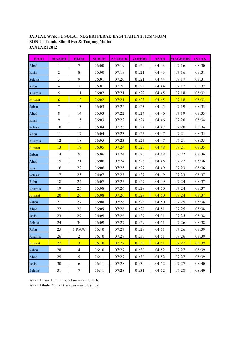 Waktu Solat Melaka 2022 1443h 1444h Jakim Tahunan
